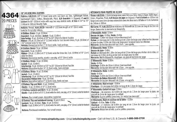 Simplicity 4364 0581 Heigl Pattern 18 Doll Clothes Etsy Schweiz